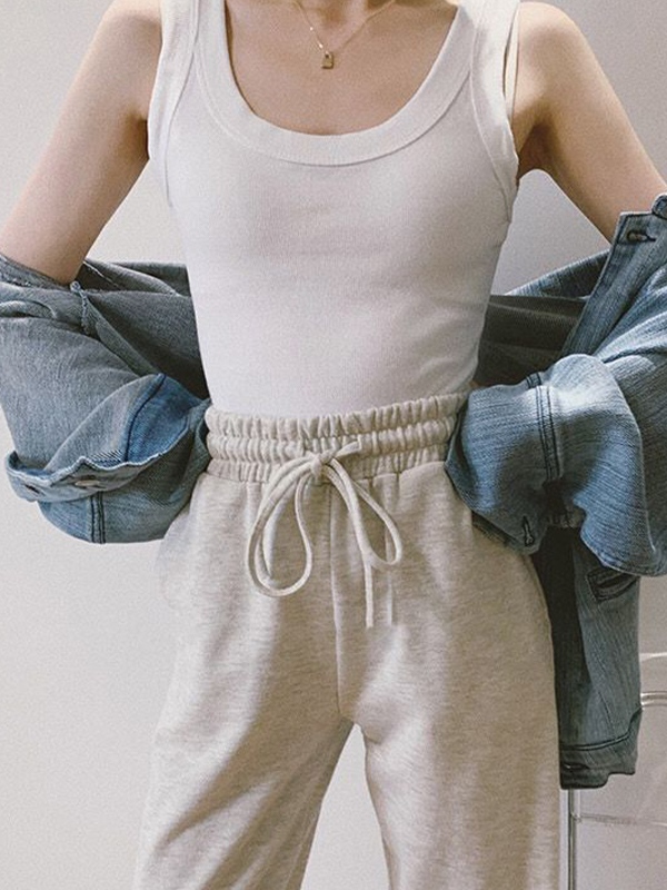 Solid Ribbed U Neck Tank Top