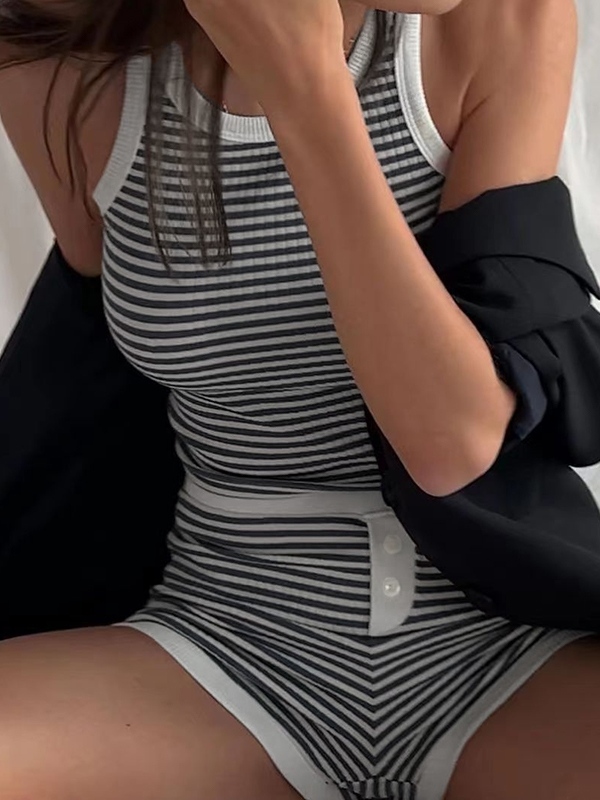 Be the first to review “Striped Ribbed Tank Top&Shorts Set”