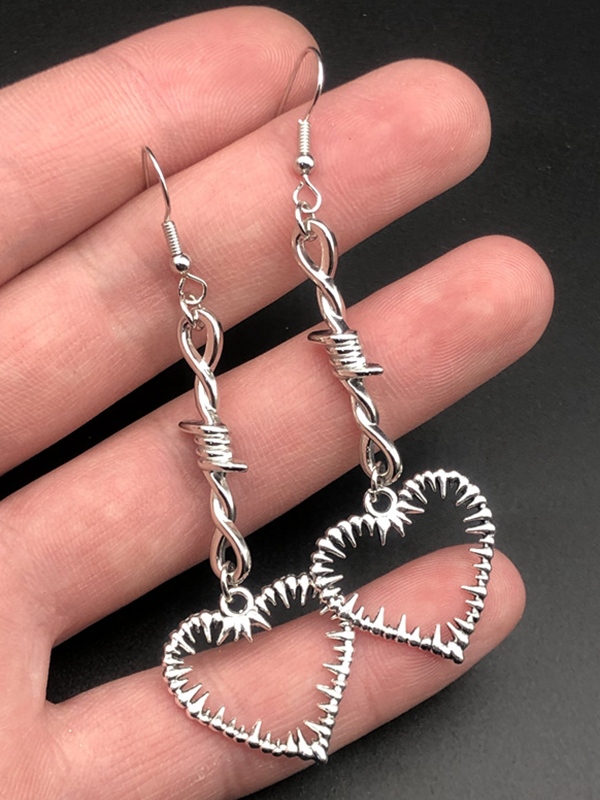 Thorn Heart Cutout Charm Stud Earring