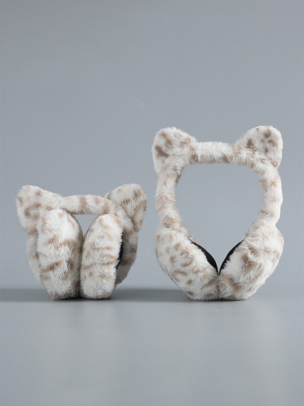 Foldable Leopard Pattern Fuzzy Cat Earmuffs