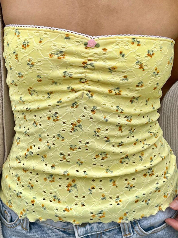 Lace Splicing Hollow Bandeau Top