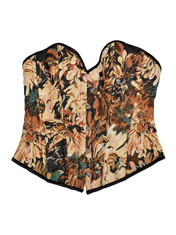 Vintage Lace Velvet Splice Irregular Hem Corset Top