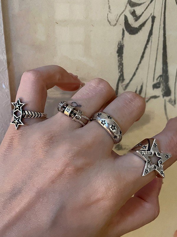 Vintage Star Pattern Cuff Ring