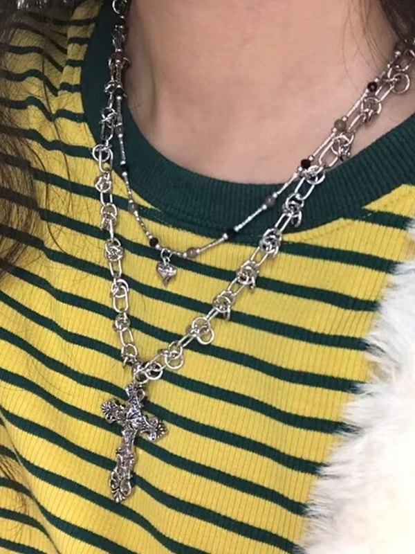 Punk Cross Silver Chain Necklace