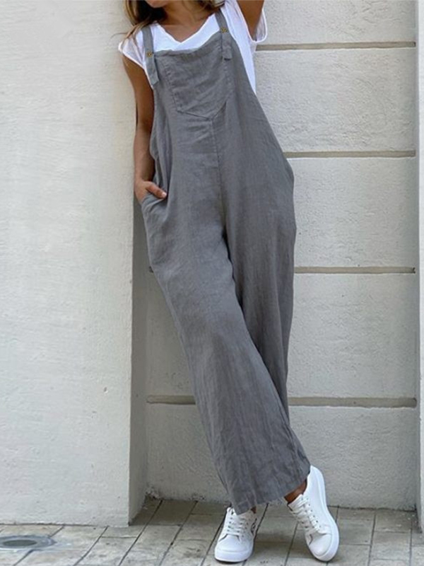 Solid Color Long Sling Jumpsuits