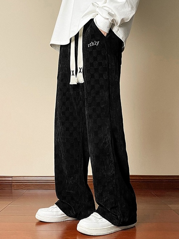 Men’s Corduroy Checkerboard Print Drawstring Wide Leg Pants