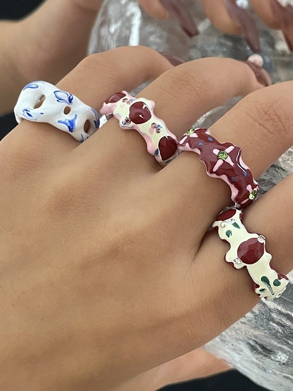 Rhinestone Embellish Enamel Cuff Ring