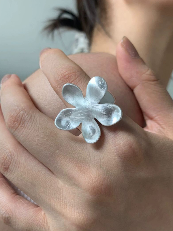 1Pc Silver Distressed Flower Cuff Ring