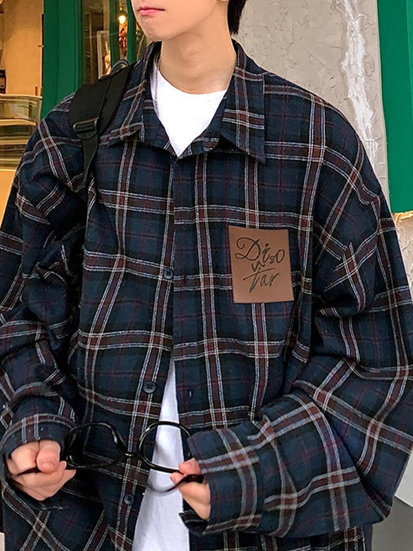 Men’s Contrast Color Plaid Long Sleeve Tee