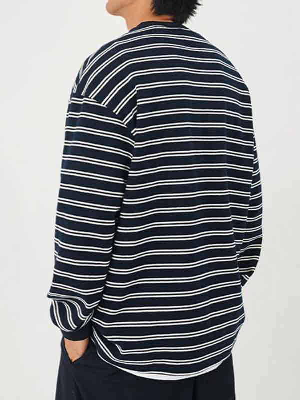 Men’s Stripe Print Pull Over Long Sleeve Tee