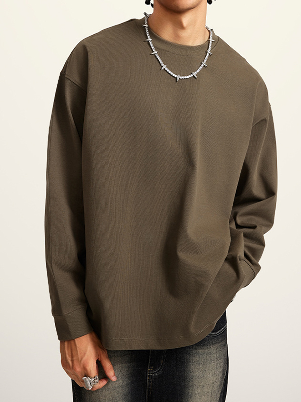 Men’ Solid Color Drop Shoulder Long Sleeve Tee