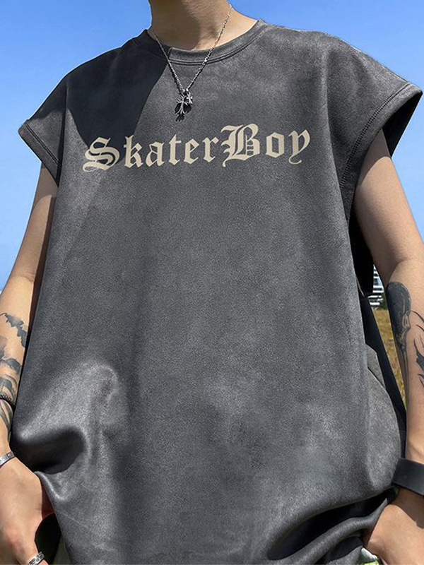 Men’S Plain Letter Embroidered Loose Vest