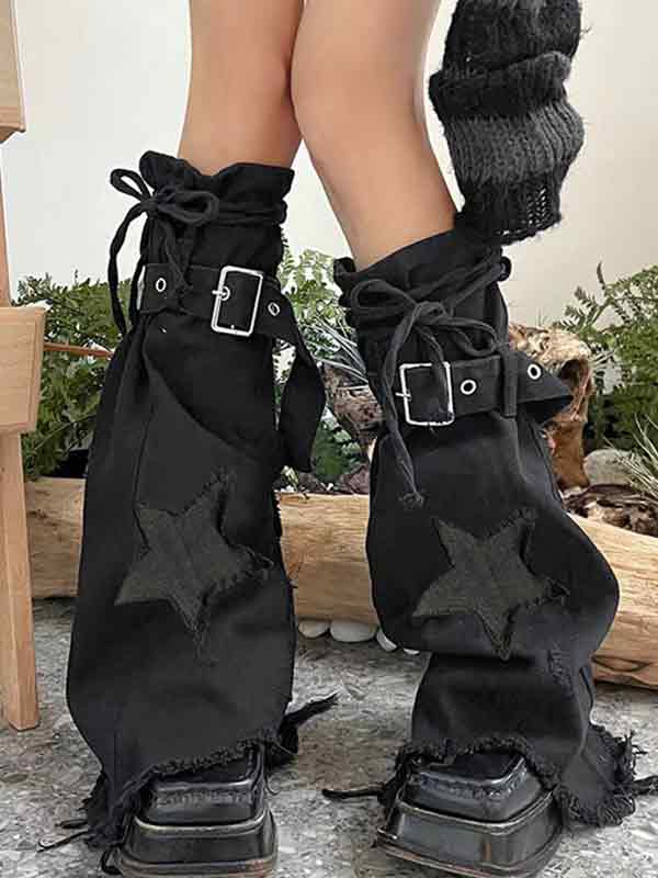 Star Embroidery Lace Up Flare Leg Warmer