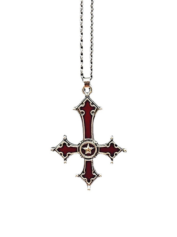 Blood Red Inverted Cross Pendant Necklace